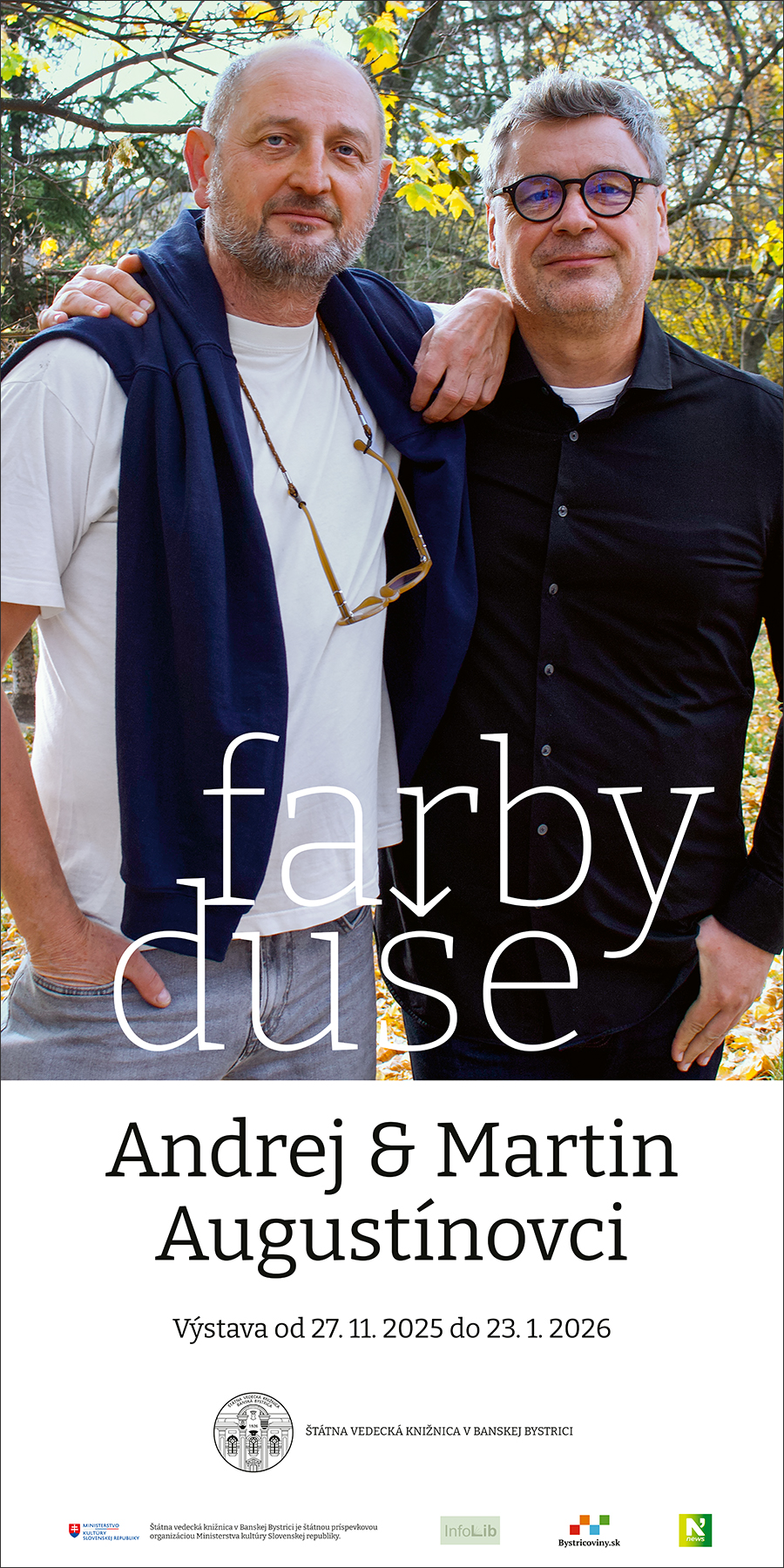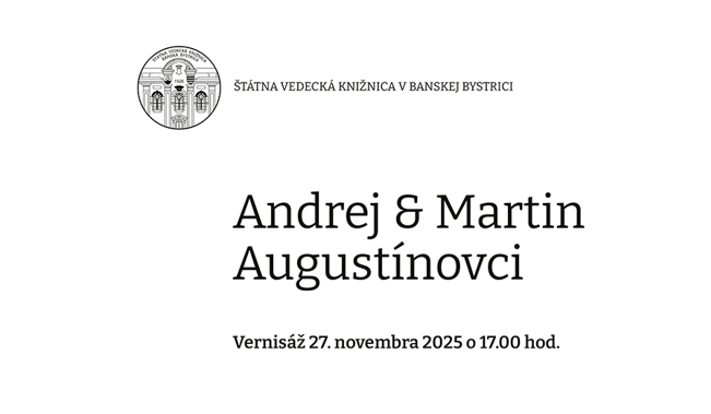 Štátna vedecká knižnica v Banskej Bystrici pozýva širokú verejnosť na výstavu s názvom Farby duše, ktorá predstaví tvorbu významných slovenských výtvarníkov Martina a Andreja Augustínovcov. Slávnostná vernisáž sa uskutoční v utorok 27. 11. 2025 o 17:00 v Galérii v podkroví, výstava potrvá do 23. 01. 2026 a ponúkne reprezentatívny výber diel, ktoré sú charakteristické žiarivou farebnosťou, hravosťou a poetikou.